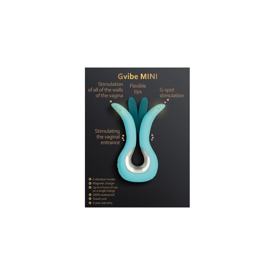 Ο δονητής Gvibe Mini για γυναίκες παρέχει διπλή ταυτόχρονη διέγερση και διπλή διείσδυση, είναι ένα χαριτωμένο και συμπαγές μασάζ ιδανικό για ζευγάρια και ταξίδια. Το G Vibe Mini εμπνεύστηκε από πολλά αιτήματα ανθρώπων που ήθελαν να δοκιμάσουν το αρχικό Gvibe αλλά τρομοκρατήθηκαν από το μέγεθός του. Τότε αποφασίσαμε να προσθέσουμε ένα νέο παιχνίδι στην οικογένεια μας Gvibe: έναν μίνι δονητή διπλής διέγερσης με το αυθεντικό διάσημο σχέδιο σε διασκεδαστικό φλερτ χρώμα. Το G Vibe Mini είναι ένας συμπαγής δονητής κλειτορίδας, ένας μίνι δονητής σημείου G και ένας δονητής διπλής διείσδυσης όλα σε ένα! Μπορείτε να τον ονομάσετε απλά γυναικείο μίνι δονητή, αλλά πιστεύουμε ότι αυτός είναι ο καλύτερος διπλός δονητής και μασάζ που είναι διαθέσιμος σήμερα. Ταυτόχρονη διέγερση δύο ευαίσθητων ζωνών – του σημείου G και του απέναντι τοιχώματος του κόλπου, ενώ ταυτόχρονα διεγείρει και την είσοδο του κόλπου. Το σχήμα του προσαρμόζεται εύκολα στις περισσότερες ανατομίες λόγω των δύο εύκαμπτων άκρων σιλικόνης που διαστέλλονται για να γεμίσουν τον κόλπο. Δύο ισχυροί αλλά αθόρυβοι κινητήρες.