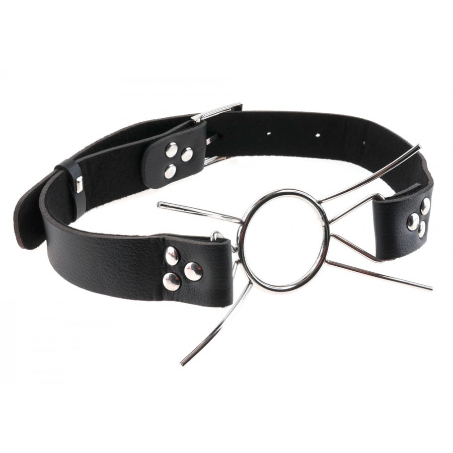 Αυτό το spider gag είναι το τέλειο εργαλείο για παιχνίδια ευχαρίστησης και υποταγής. Ο δακτύλιος και τα τέσσερα λυγισμένα "πόδια" από ανοξείδωτο χάλυβα θα κρατήσουν το στόμιο του υποστρώματος ορθάνοιχτο και θα το εμποδίσουν να κλείσει. Για πολύ βαθιές γνώσεις και την εισαγωγή διαφόρων πραγμάτων ή υγρών. Ο δερμάτινος ιμάντας κεφαλής μπορεί να προσαρμοστεί σε οποιοδήποτε μέγεθος κεφαλής χρησιμοποιώντας το κούμπωμα της πόρπης.