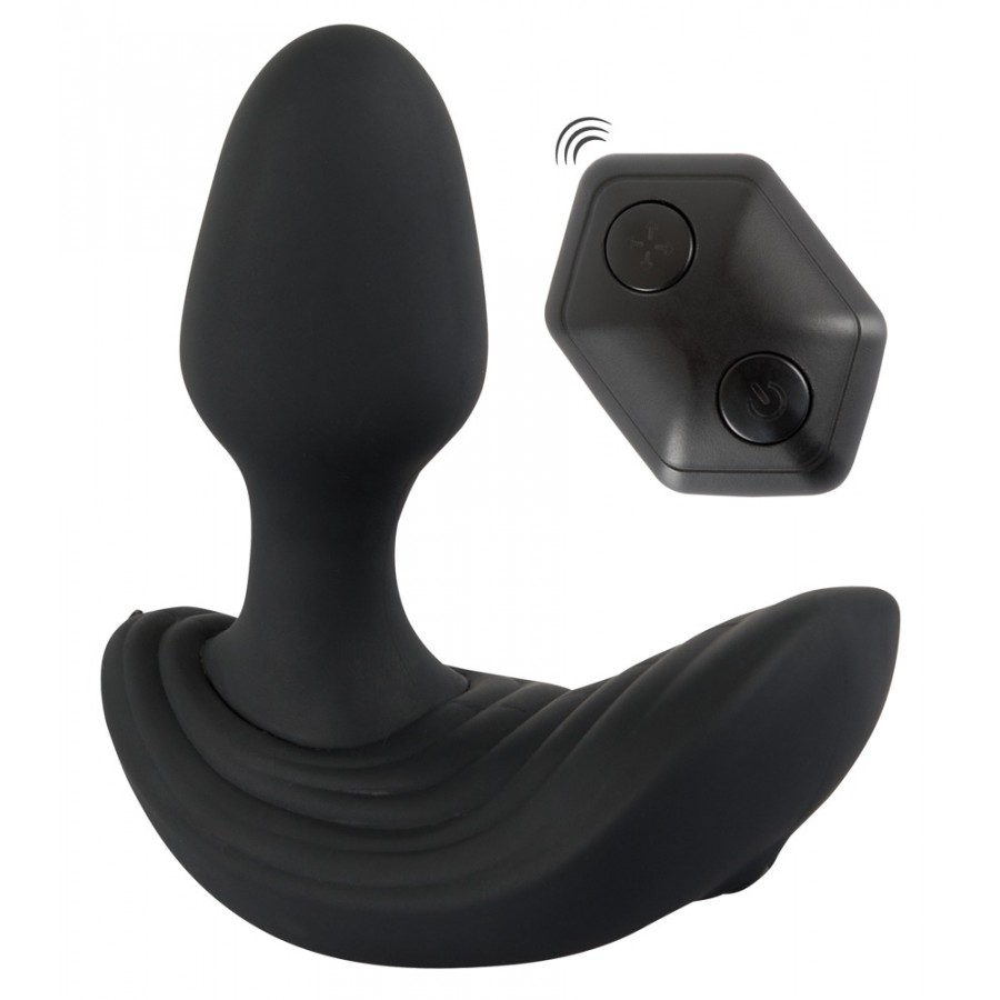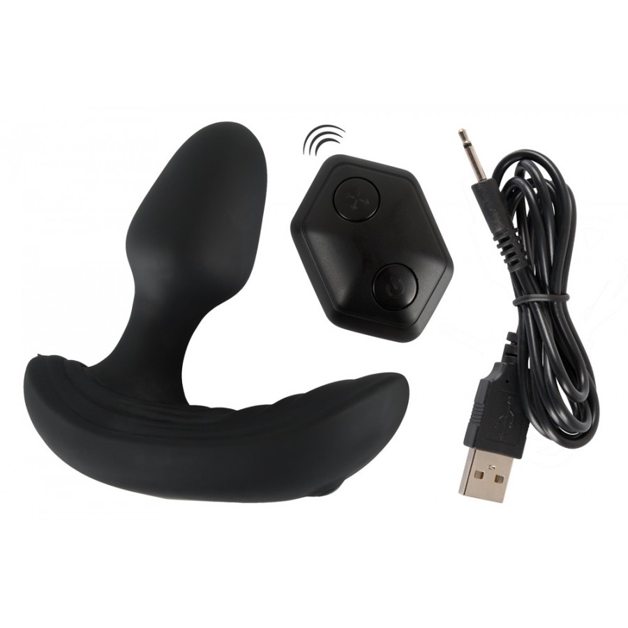 Υπέροχου σχήματος, εύκαμπτος δονητής πρωκτού Butt Plug από Inflatable + RC με έντονη υφή στη μπάρα του περίνεου για ταυτόχρονη διέγερση του προστάτη και του περίνεου. Μπορεί επίσης να φουσκώσει ώστε να είναι μεγάλο και διογκωμένο – για μια υπέροχη αίσθηση γεμάτου. Είναι επίσης κατάλληλο για τέντωμα πρωκτού. Οι κραδασμοί (7 λειτουργίες), η λειτουργία αντλίας και η λειτουργία απελευθέρωσης αέρα μπορούν να ελεγχθούν ξεχωριστά με το πάτημα ενός κουμπιού στο τηλεχειριστήριο. Όταν ενεργοποιούνται οι δονήσεις, ο δονητής πρωκτού αντλεί αυτόματα σε διάφορους παλλόμενους ρυθμούς για μια πολύ ρεαλιστική αίσθηση. Ο χρήστης πρέπει απλώς να πατήσει ξανά το κουμπί στο τηλεχειριστήριο για να μειώσει το μέγεθος του δονητή πρωκτού. Το φανταχτερό βύσμα καλύπτεται από απαλή σιλικόνη που αισθάνεται τέλεια στο δέρμα και όταν το φοράτε. Μπορεί να επαναφορτιστεί με το καλώδιο USB που περιλαμβάνεται. Περιλαμβάνει μπαταρίες (CR2032) για το τηλεχειριστήριο.