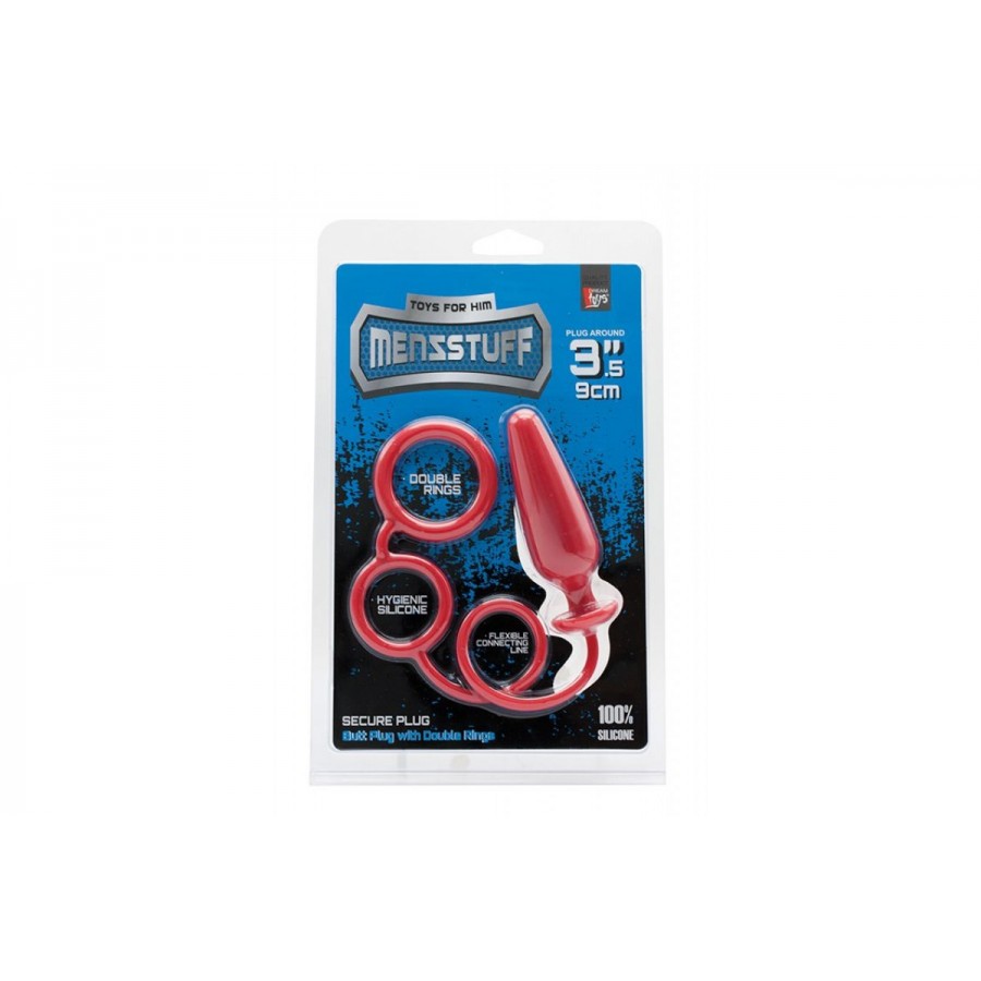 Ένας διπλός δακτύλιος είναι προσαρτημένος σε αυτό το βύσμα με εύκαμπτο κορδόνι, οπότε αυτό το παιχνίδι μπορεί να προσφέρει πρωκτική απόλαυση και ταυτόχρονα να κάνει την στύση ισχυρότερη και μεγαλύτερη διάρκεια. Το πρωκτικό πώμα έχει κωνικό σχήμα, μήκος 9 cm και διάμετρο 3 cm. Οι δακτύλιοι μπορούν να χρησιμοποιηθούν ως δακτύλιος διπλού κόκορα ή ως συνδυασμός δακτυλίου πέους και δακτυλίου όσχεου. Πρωκτικό βύσμα με λουράκι και διπλό πέος Υγιεινή σιλικόνη Ευέλικτη γραμμή σύνδεσης Μήκος βύσματος 9 cm Διάμετρος βύσματος 3 cm
