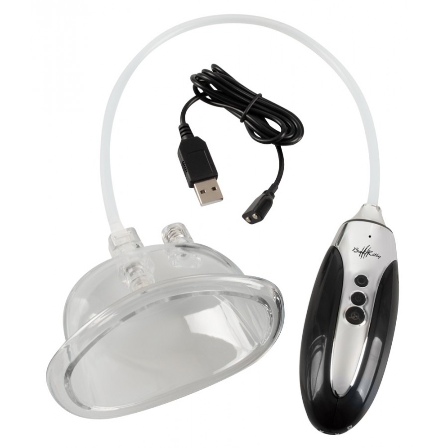 Αυτόματο Pussy Pump από την Bad Kitty με 7 πολύ ισχυρούς τρόπους αναρρόφησης με το πάτημα ενός κουμπιού. Ο αιδοίος και η κλειτορίδα διογκώνονται με διεγερτικό τρόπο, έχουν καλύτερη ροή αίματος και γίνονται ακόμη πιο ευαίσθητα στην αφή λόγω του κενού που δημιουργείται. Το κενό μπορεί εύκολα να ρυθμιστεί και να σταματήσει πατώντας το κουμπί απελευθέρωσης. Η βεντούζα και το περίβλημα σιλικόνης μπορούν να αφαιρεθούν. Μπορεί να επαναφορτιστεί με το καλώδιο USB που περιλαμβάνεται.