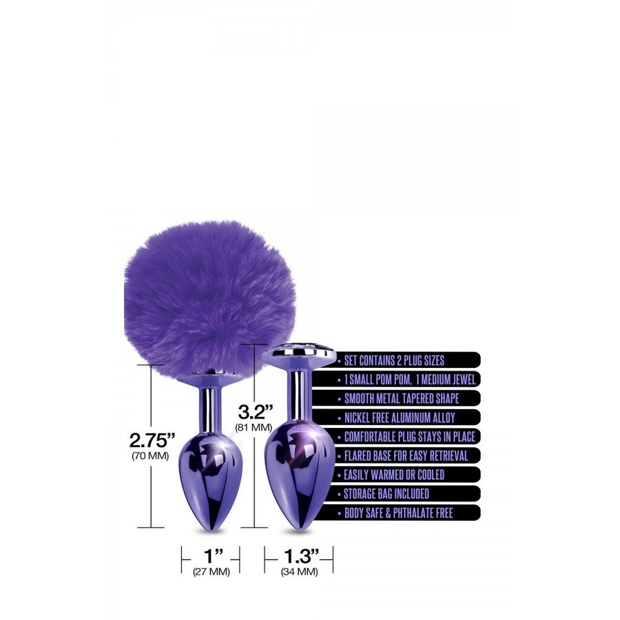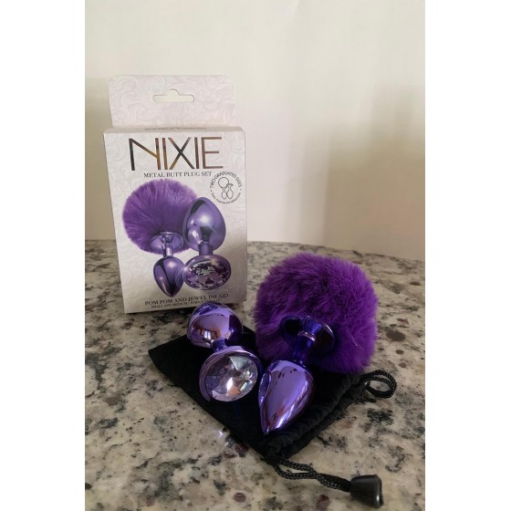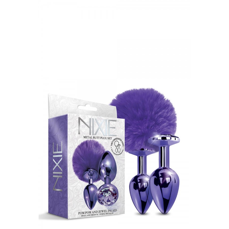 Στολίστε το ντέρι σας με το σετ Nixie Metal Butt Plug Set. Αυτό το σετ περιέχει 2 μεγέθη βύσματος: ένα μικρό βύσμα με ουρά πομ πον και ένα μεσαίο βύσμα με ψεύτικο πετράδι αμέθυστου στη βάση. Τα γυαλιστερά μωβ βύσματα έχουν λείο μεταλλικό φινίρισμα από ελαφρύ κράμα αλουμινίου.
